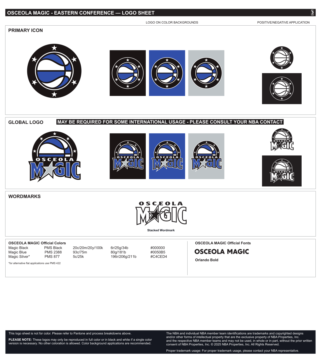 - "Osceola Magic Reproduction Guideline Sheet"https://cdn-assets-us.frontify.com/s3/frontify-enterprise-files-us/eyJwYXRoIjoibmJhXC9maWxlXC92eVpZaFNqQ201NVNuemphUkU1Ui5wZGYifQ:nba:sg2UPf1Xcd7FXJAT9iP_weIDXKItTG4luDjlLorV7YI?width=2400